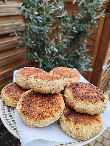 A présent vous pouvez les faire cuire dans une poêle avec de l'huile d'olive. Pour ma part je fais des galettes un peu épaisses (3cm) et assez large (10/12cm) que je fais dorer à souhait.